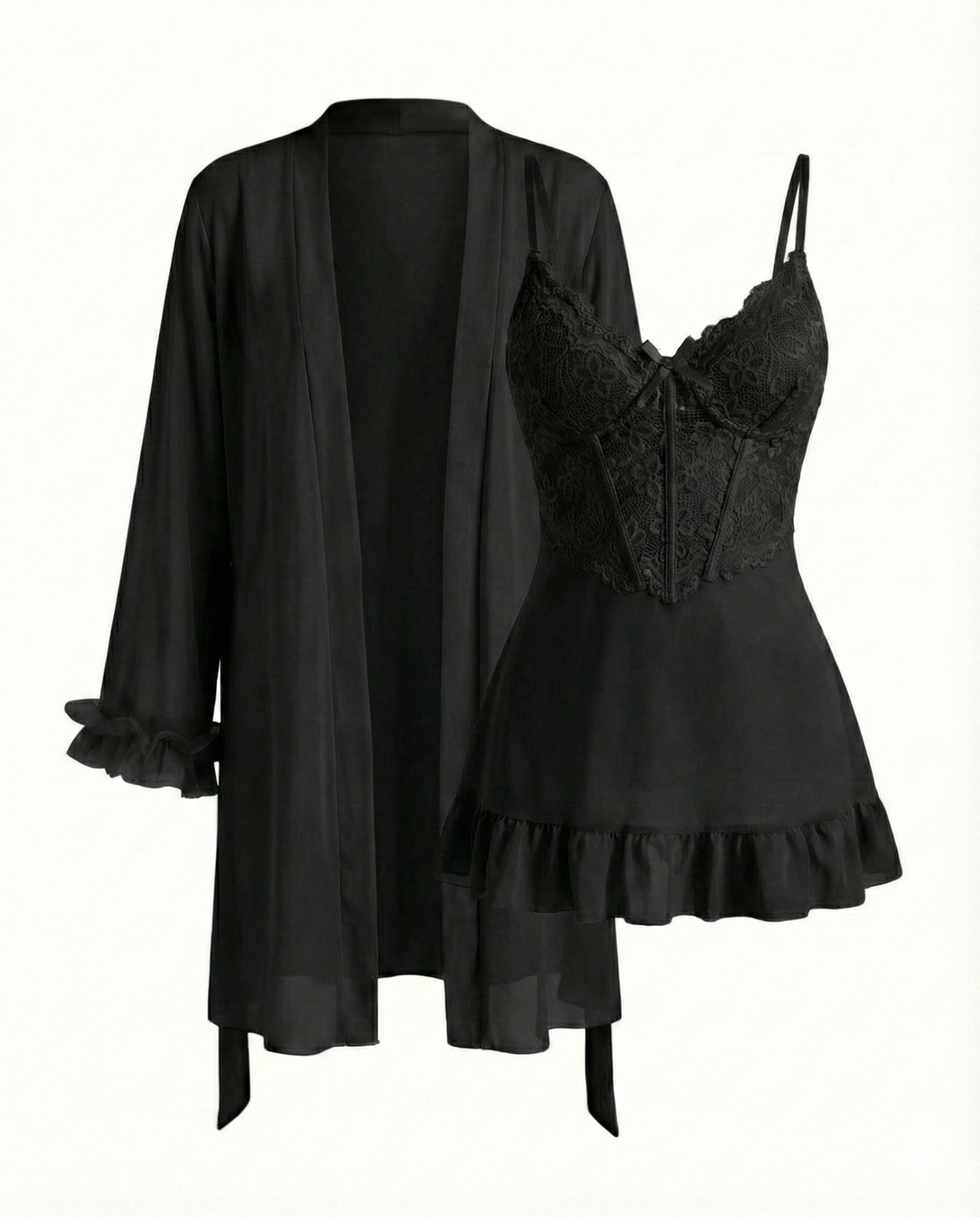 Elevate your nights with our Lace Cami Nightgown & Floral Lace Trim Wide Sleeve Sheer Robe Set—a dreamy combination of elegance, sensuality, and comfort. Perfect for romantic evenings, private parties, or special occasions, this 2-piece set is designed to make you feel confident and alluring.