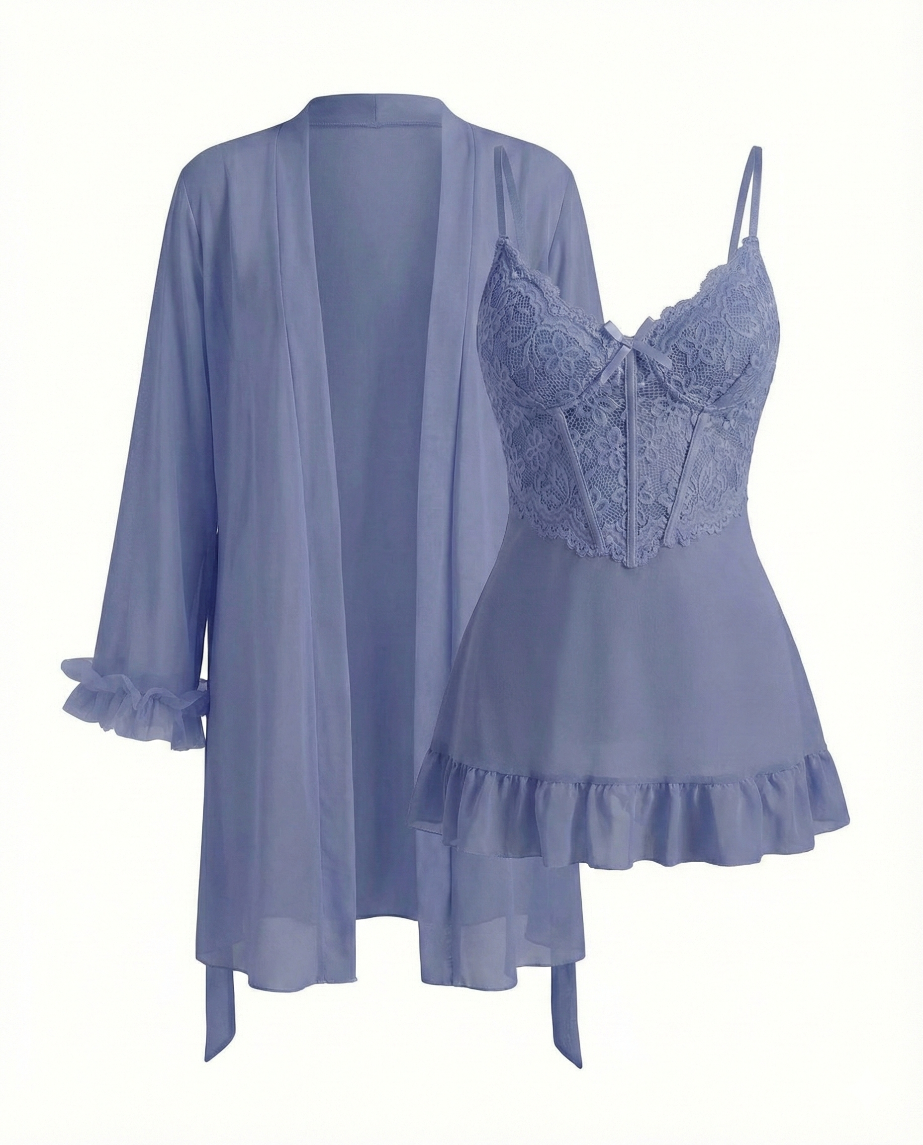 Number of Pieces: 2-piece set – camisole nightgown + matching sheer robe.
