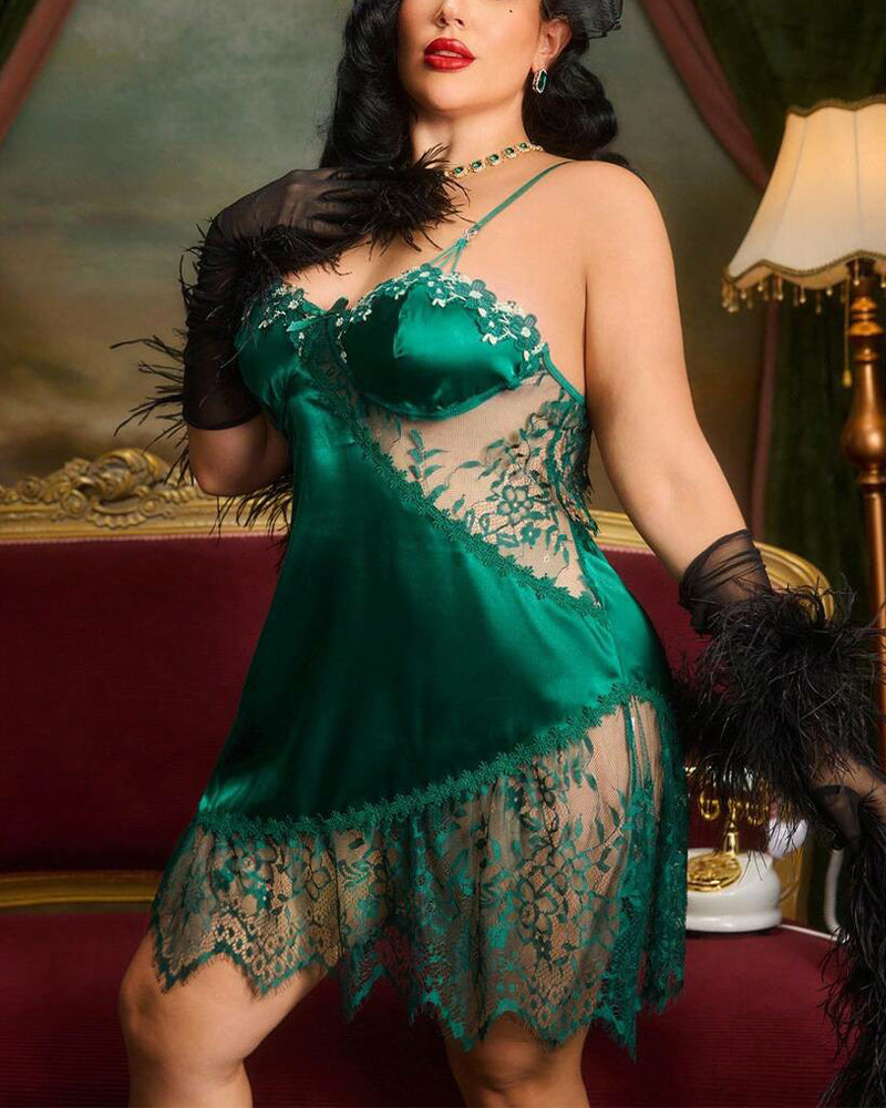 Crafted from smooth faux silk satin, this plus size camisole nightgown is made with 95% polyester and 5% elastane for a soft, luxurious feel against the skin. The fabric features a non-stretch finish that maintains an elegant drape and polished look. Designed as a one-piece pullover nightgown, it slips on easily for effortless wear while the contrast floral lace adds a refined, feminine touch.