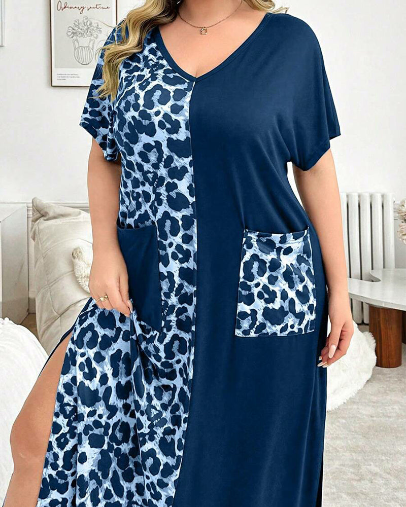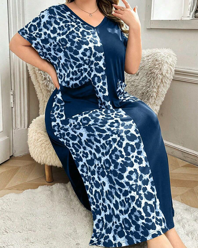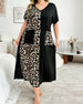 The Plus Size Leopard Print Maxi Dress combines comfort, style, and versatility. Its high-stretch knitted fabric adapts to your curves without feeling restrictive, while the soft polyester blend ensures comfort throughout the day. The V-neck and short sleeves make it both flattering and practical, suitable for casual wear, home loungewear, or even relaxed social occasions.