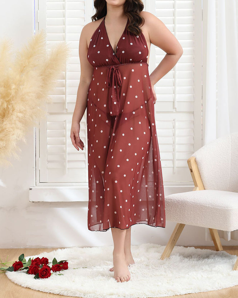 This Plus Size Polka Dot Maxi Dress with Bow Tie blends comfort, elegance, and femininity into one stunning nightwear piece. The flowing silhouette and soft stretch fabric make it effortless to wear, while the polka dots and bow tie detail add a romantic, charming touch.