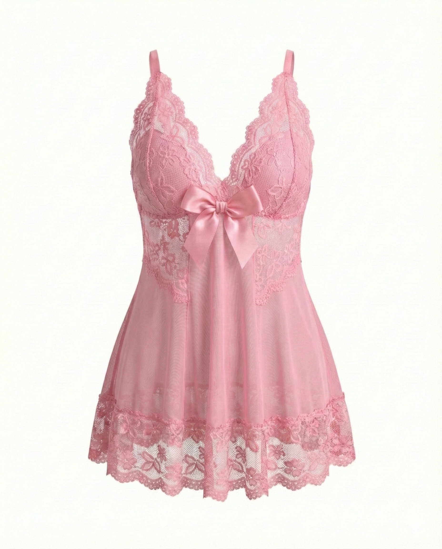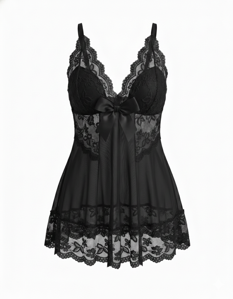 • Hollow Mesh with Lace Accents: Features delicate hollow mesh, contrast lace trim, and dainty bow details for a seductive yet elegant finish.