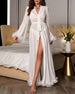 Ruffle Trim Long Sleeve Sheer Mesh Bride Robe – Belted Nightgown
