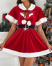 This dress combines festive flair, playful sexiness, and cozy comfort in one outfit. The low neckline is flirty yet elegant, while the plush cape adds a dramatic, holiday-ready touch. Whether you’re attending a Christmas party, taking themed photos, or enjoying a festive night out, this dress ensures you look stunning, feel comfortable, and embrace the holiday spirit.