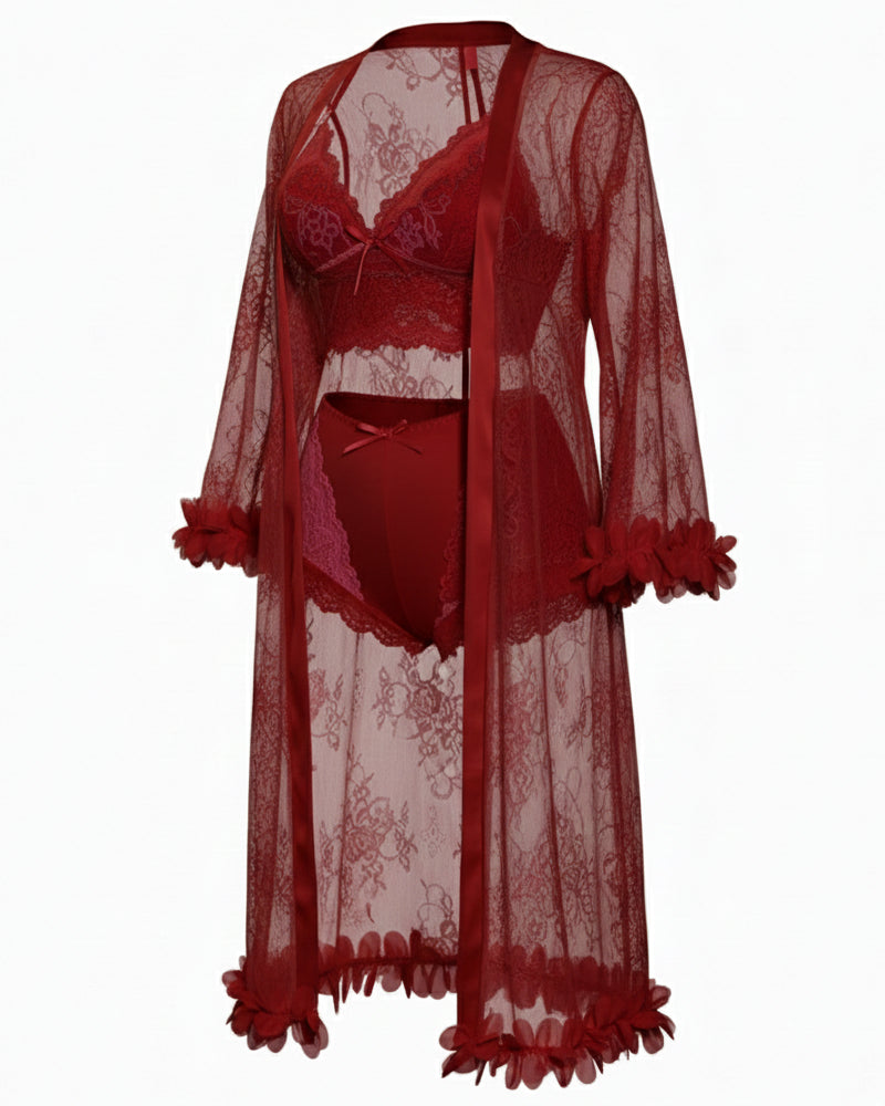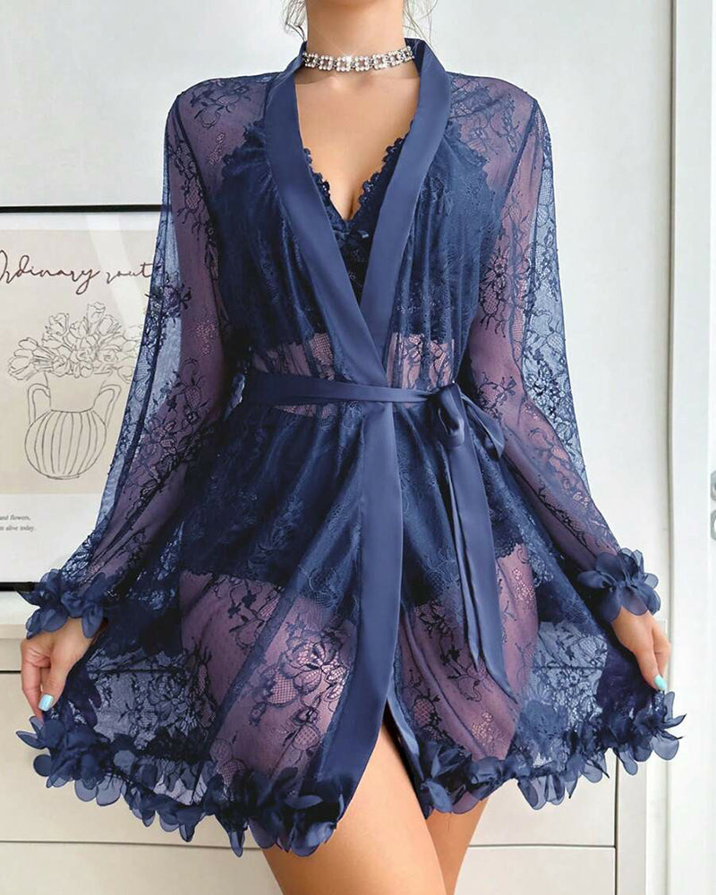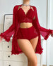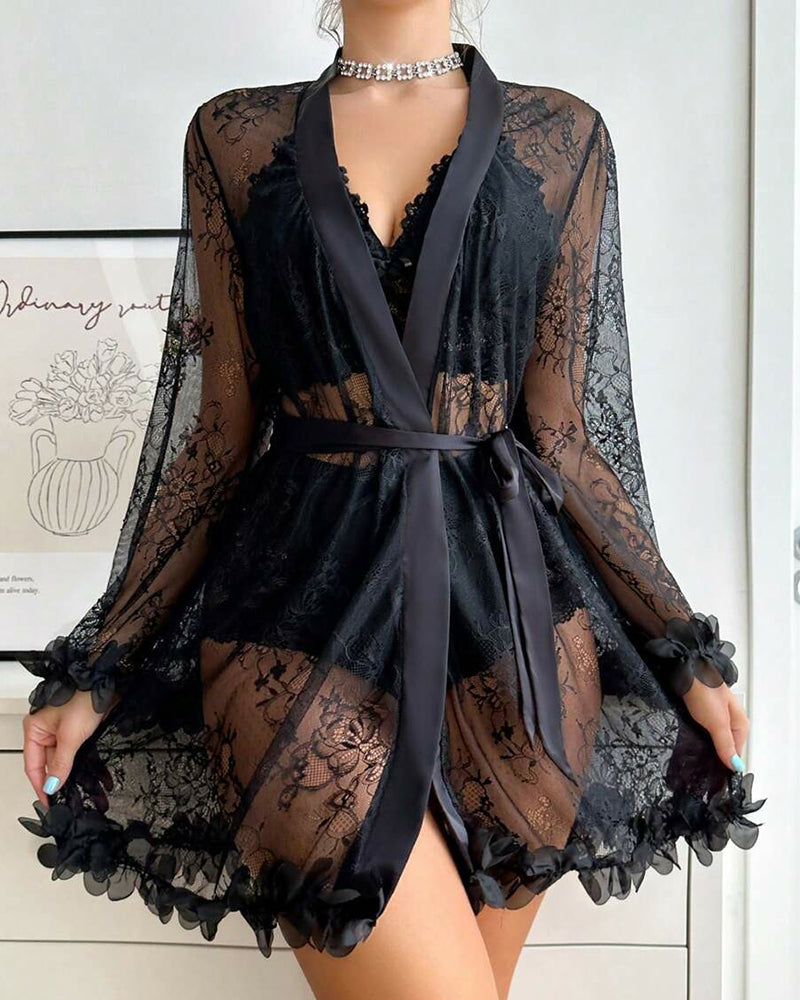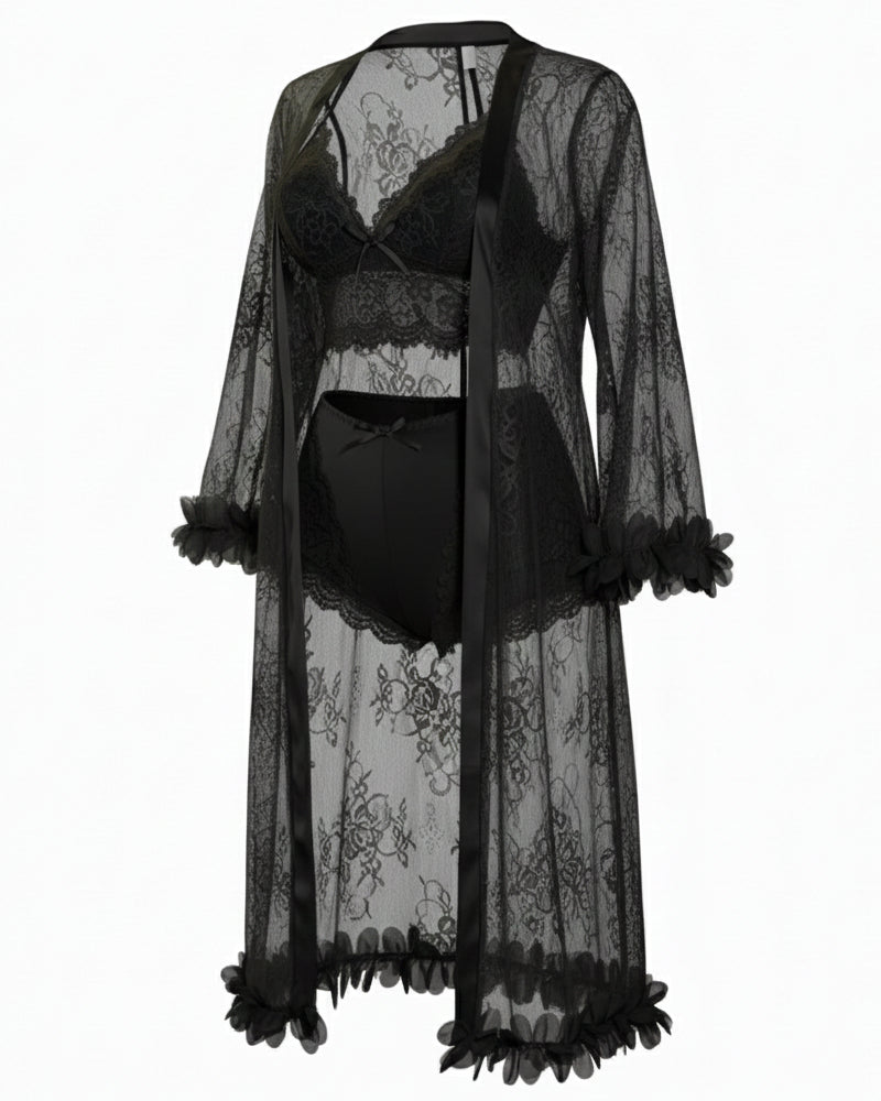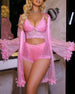• 3-Piece Lingerie Set: Includes sheer lace robe, camisole, and shorts for a complete, coordinated look.