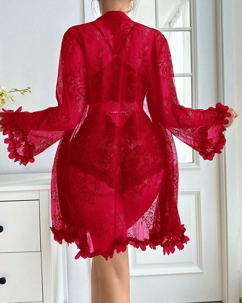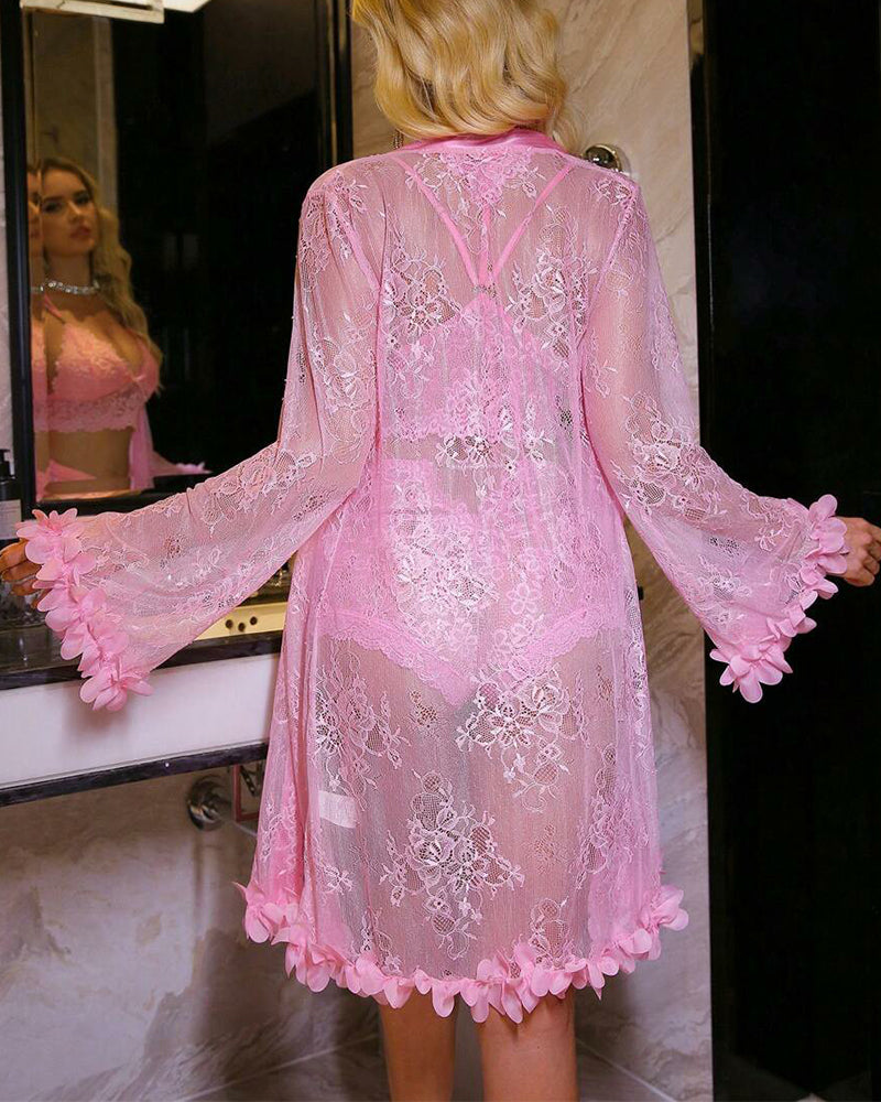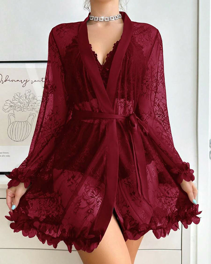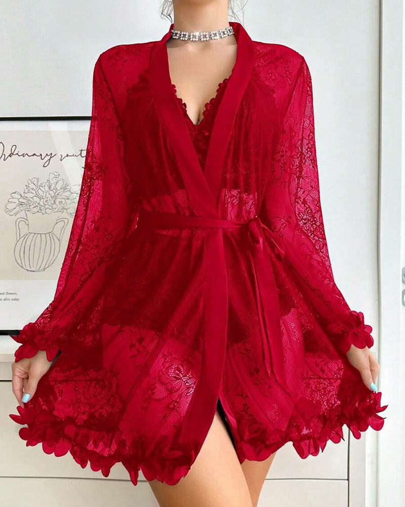 • 3-Piece Lingerie Set: Includes sheer lace robe, camisole, and shorts for a complete, coordinated look.