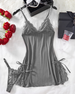 Ignite passion and elegance with the V-Neck Side Slits Lace Nightgown with G-String, the perfect blend of allure and sophistication. This stunning nightgown features a daring V-neckline and alluring side slits, designed to enhance your curves and create a mesmerizing silhouette. Paired with a matching G-string, this set is ideal for intimate evenings or special occasions, ensuring you feel confident and irresistible.