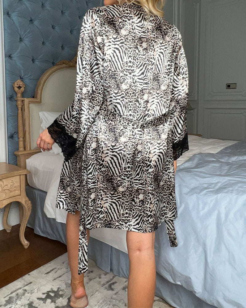 A flowing silhouette enhanced with delicate lace detailing, giving the robe a romantic, feminine finish.