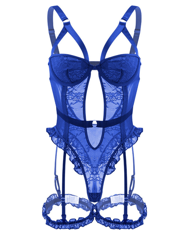 Made of delicate lace and mesh, it provides an extremely sexy and elegant look. The opening buckle in the crotch guarantees comfort of wearing and ease of putting on.
