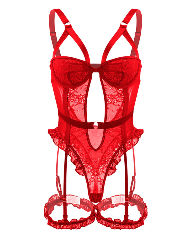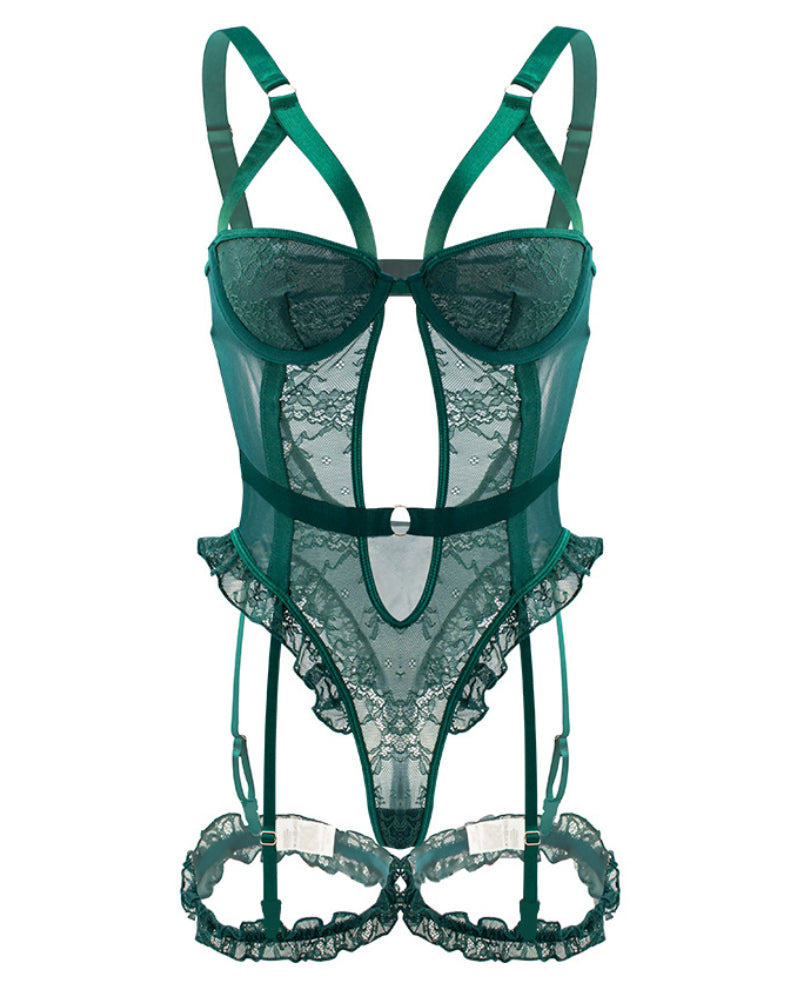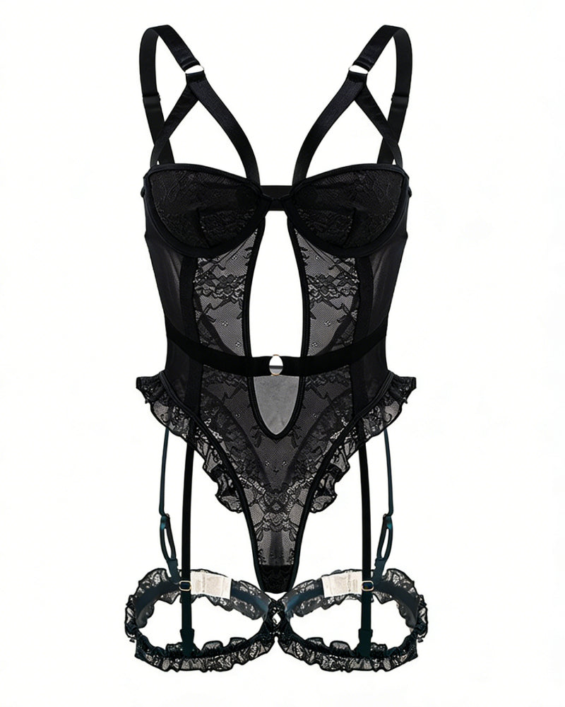 ❤️ Lace frills give the whole thing a subtle, romantic accent. Adjustable garter strap and non-detachable lace leg loops emphasize the feminine silhouette, providing a unique and individual look.