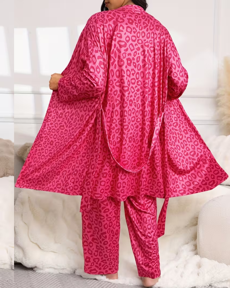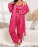 This 3-piece pajama set combines comfort, elegance, and versatility in one stylish ensemble. The silky soft fabric feels luxurious against the skin, while the matching robe, camisole, and long pants create a polished look for lounging at home, traveling, or festive occasions. Lightweight yet sophisticated, it’s the perfect set to relax, unwind, and look effortlessly chic.