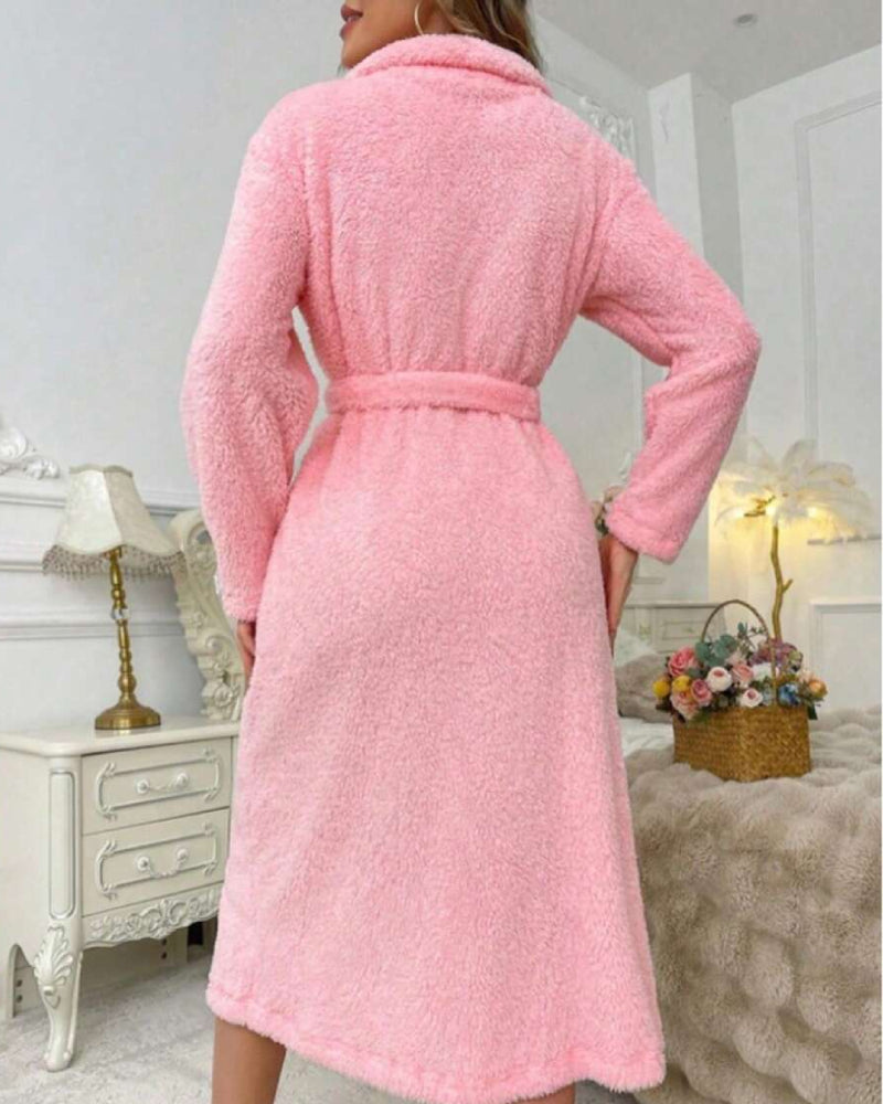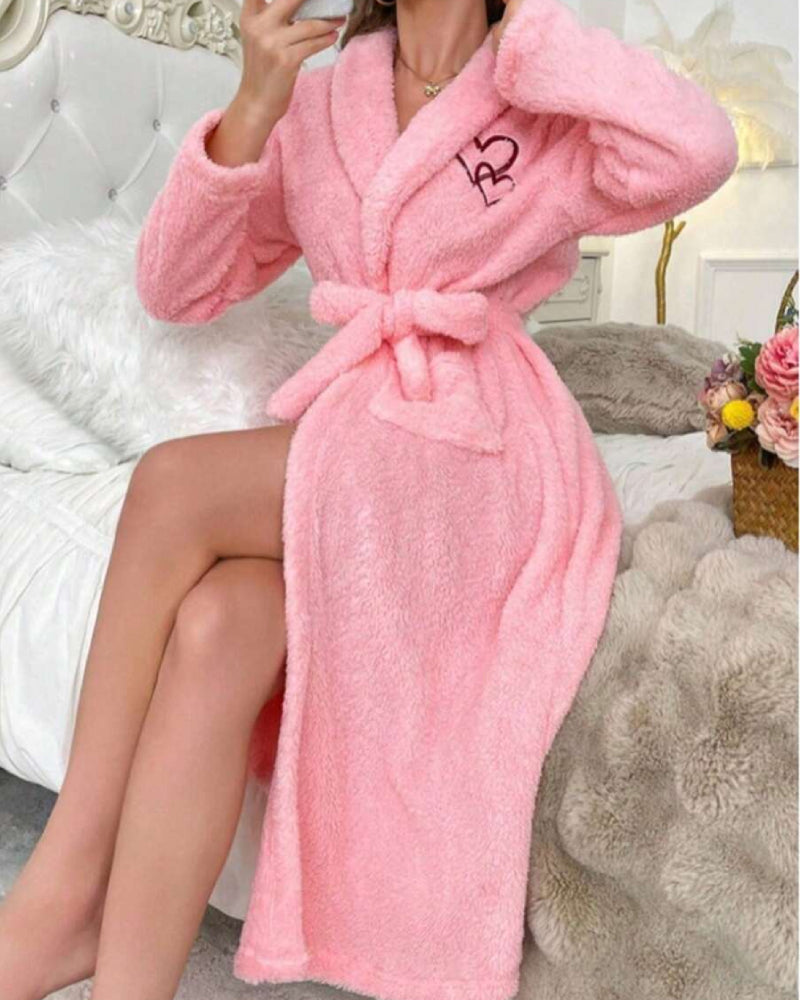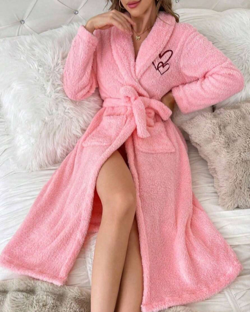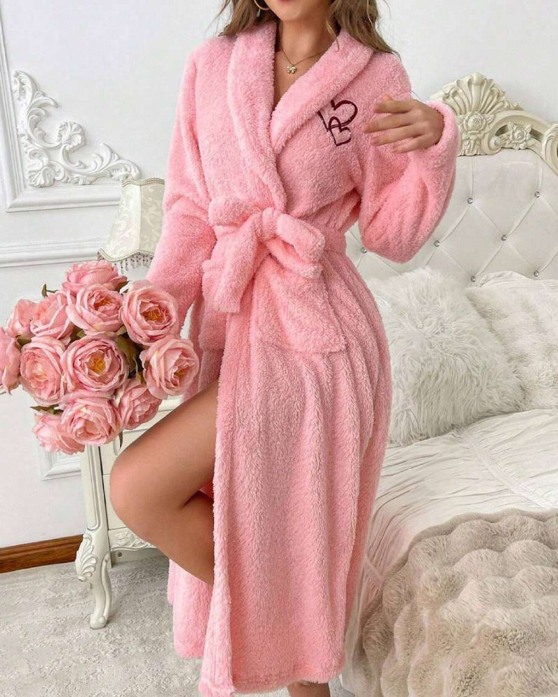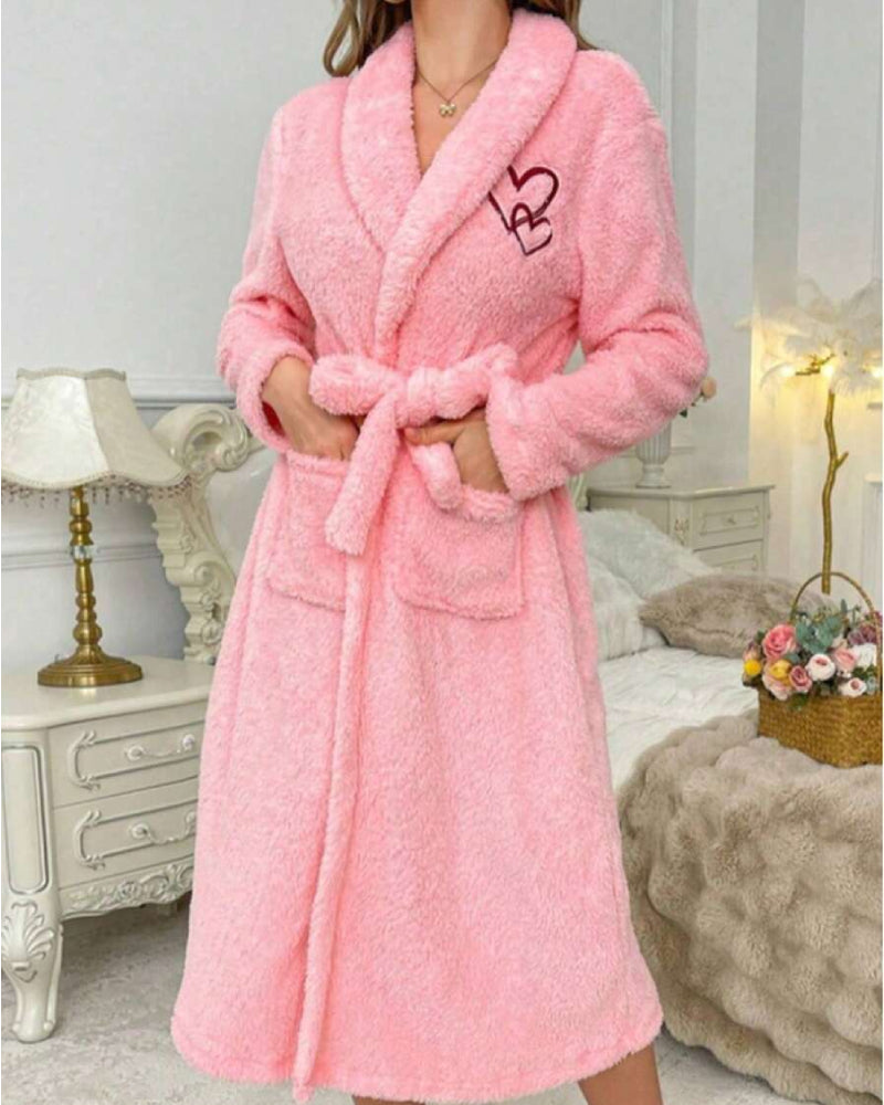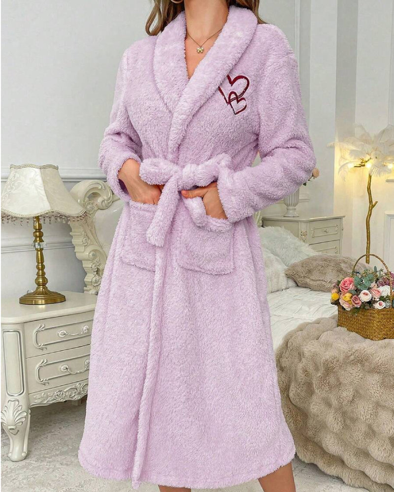 Wrap yourself in warmth and charm with our Soft Heart Embroidered Plush Robe. Designed with a cozy, plush feel and adorable embroidered heart details, this robe is perfect for lounging at home, relaxing after a bath, or enjoying special occasions like Valentine’s Day. The midi length, loose fit, and soft knitted fabric provide ultimate comfort, while the playful embroidery adds a touch of cuteness and elegance. Treat yourself or a loved one to a plush robe that combines style, comfort, and a little bit of fun.
