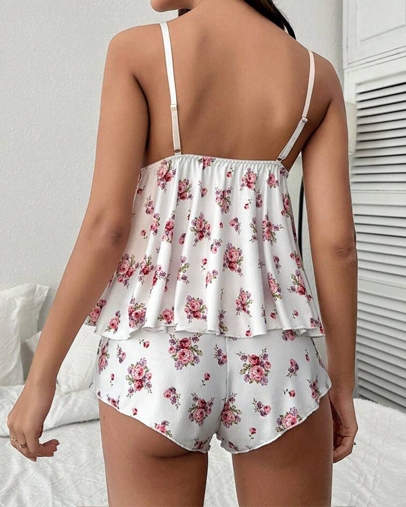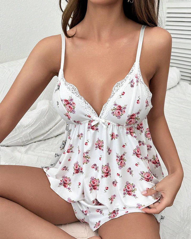 This Sexy Floral Print Cami Top & Shorts Set blends romance with everyday comfort. The lace trim and bow detail bring an elegant, bridal-inspired charm, while the lightweight rib knit fabric keeps you cool and relaxed. Whether you’re preparing for a special night, enjoying your honeymoon, or simply unwinding at home, this two-piece set makes you feel confident, soft, and effortlessly feminine.