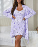 Style: Two-piece sleep set featuring a sexy lace-print cami nightdress paired with a matching robe