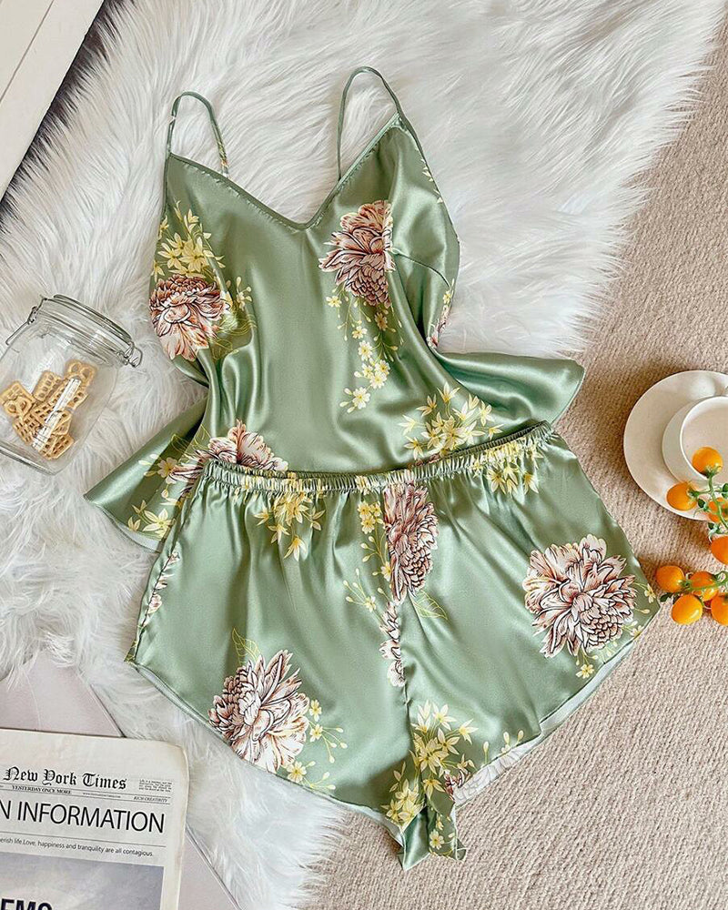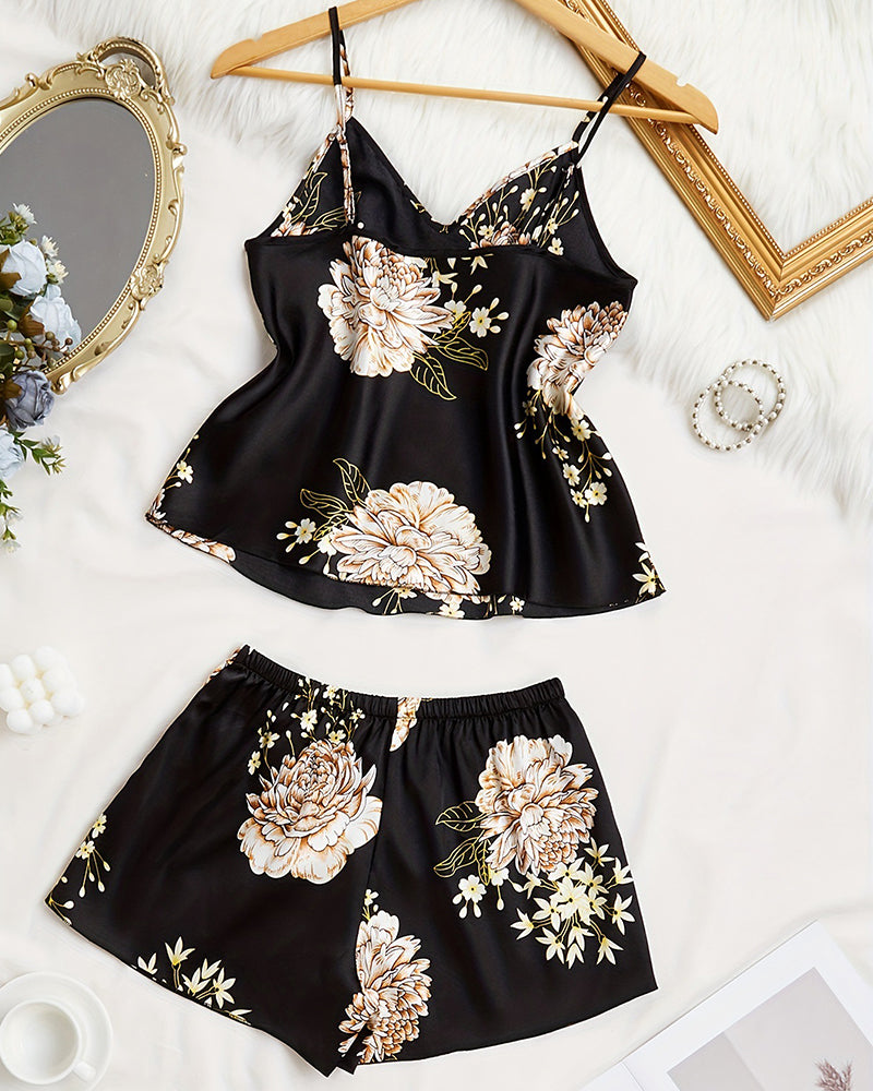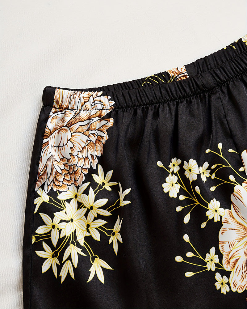 This satin cami and shorts pajama set blends elegance and comfort effortlessly. The silky smooth fabric feels cool and gentle on the skin, making it ideal for restful sleep or relaxed evenings at home. The baroque floral print elevates the look, while the backless cami adds a hint of allure without sacrificing comfort.