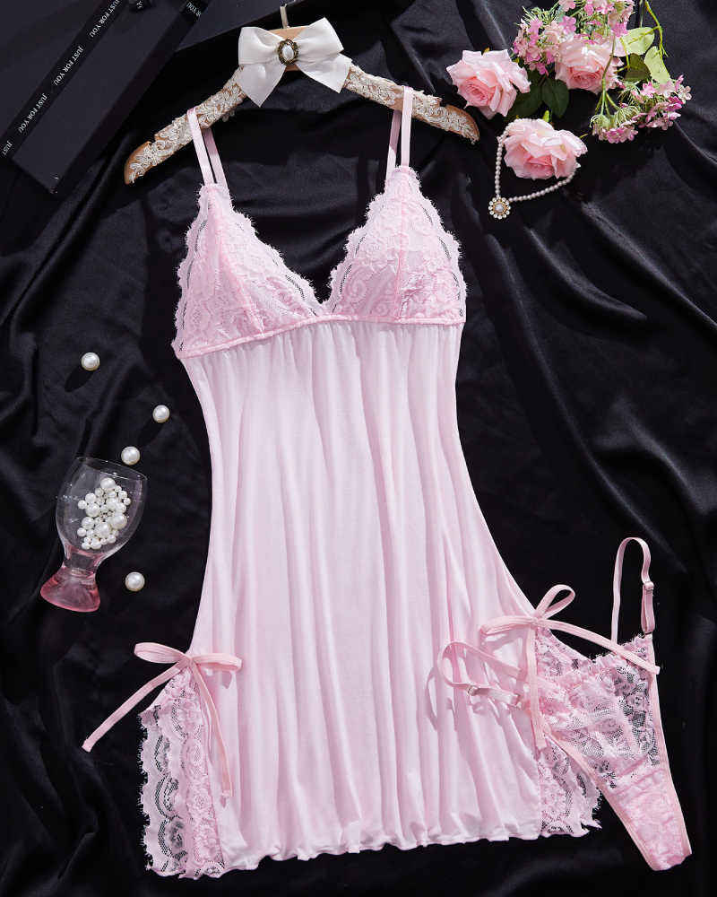 Ignite passion and elegance with the V-Neck Side Slits Lace Nightgown with G-String, the perfect blend of allure and sophistication. This stunning nightgown features a daring V-neckline and alluring side slits, designed to enhance your curves and create a mesmerizing silhouette. Paired with a matching G-string, this set is ideal for intimate evenings or special occasions, ensuring you feel confident and irresistible.